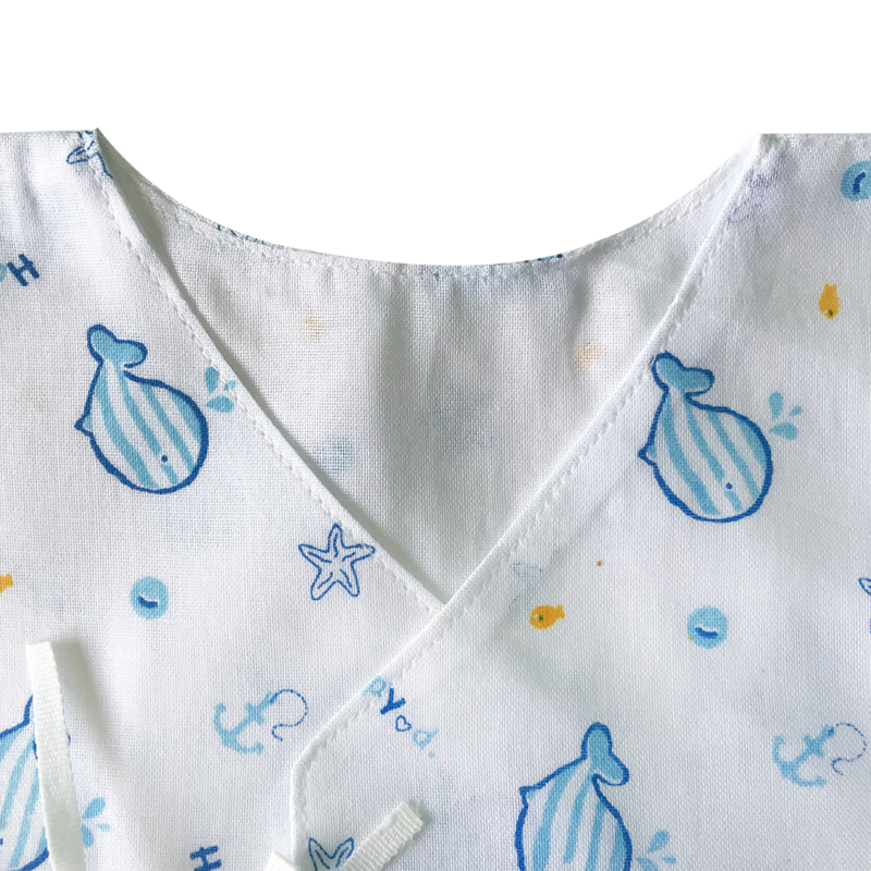 เสื้อผ้าป่าน พิมพ์ลายกระจาย รุ่น Junior แบบผูกหน้า